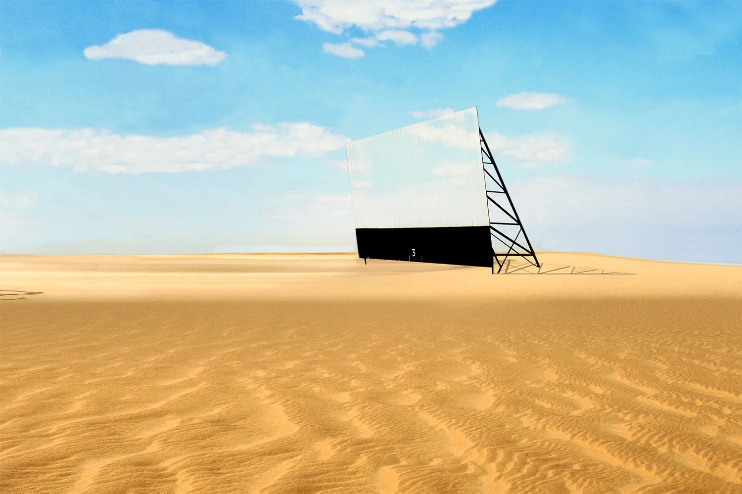 White Desert White Desert consists of three components; a large digital print (White Desert), a small installation work, Maquette for a Filmic Moment, and the large installation Triumph: Reversing Forward.